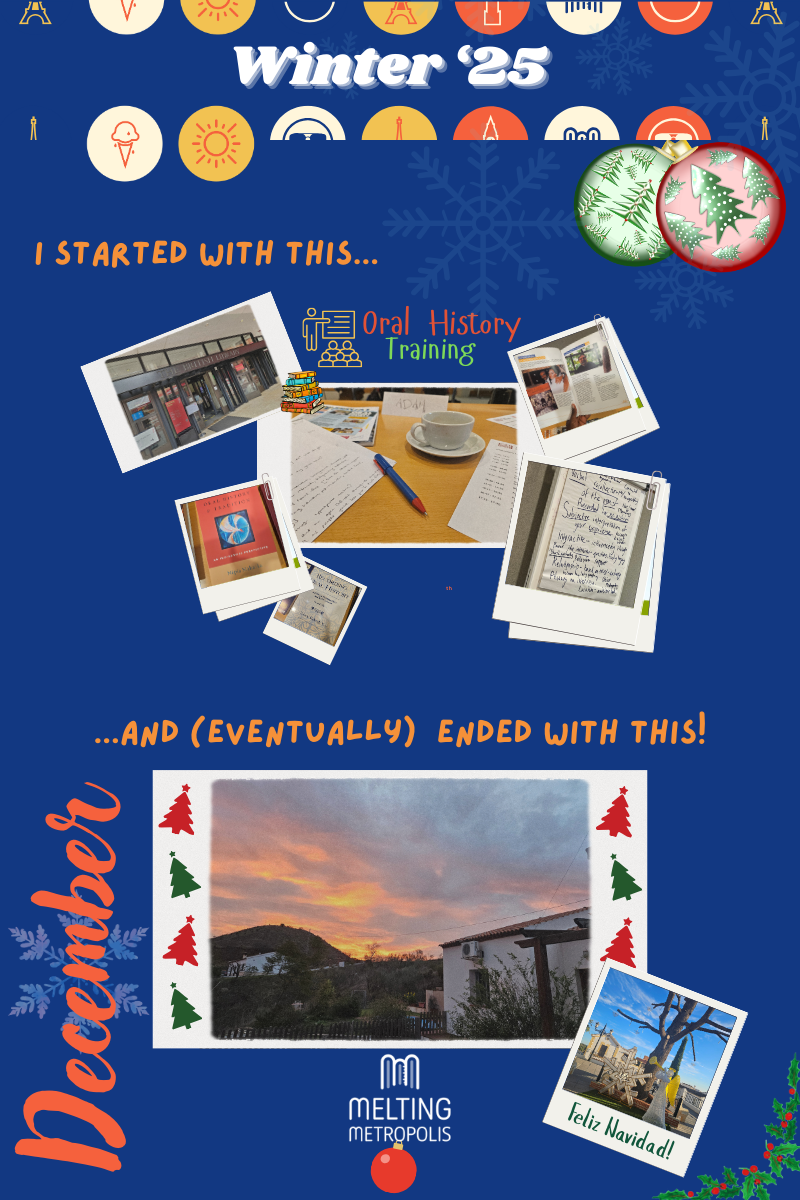 Just before Christmas I returned to southern Spain, this time undertaking my project planning sessions in Málaga. I had created a surprising amount of admin for myself, so I got up early every day to try and get through my task list while also enjoying being present.