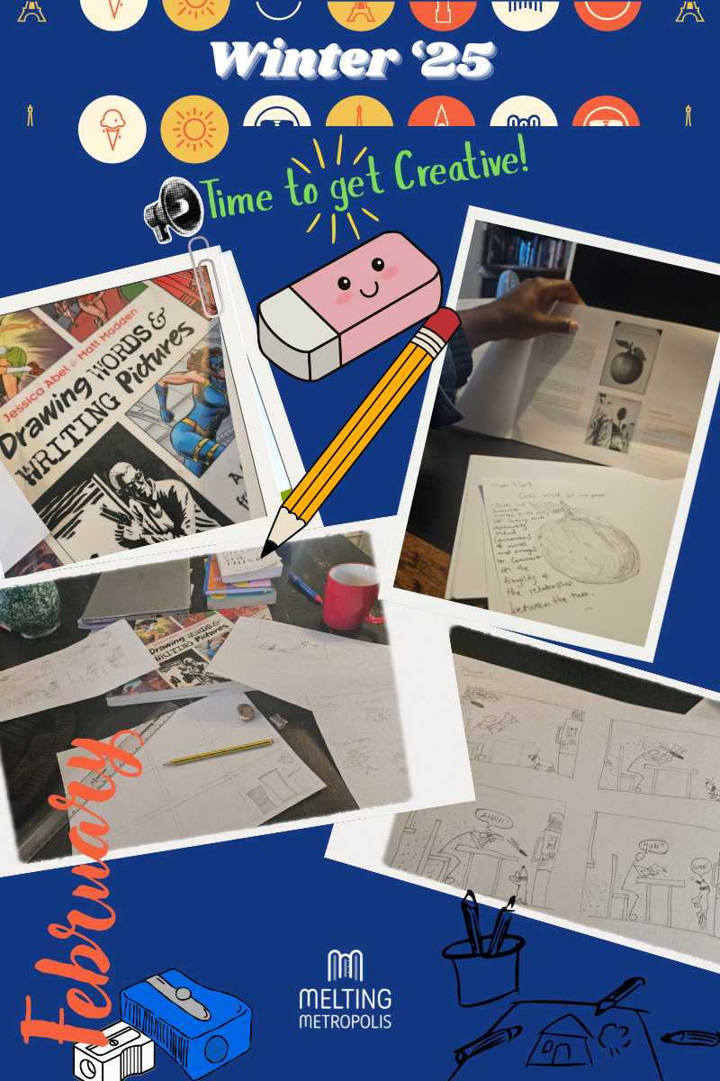 As part of the Melting Metropolis project, I’d like to utilise the medium of the graphic novel, alongside recorded audio. I’m not a graphic artist by trade so I’m challenging myself to develop my skills in this area and make this a foundational part of my exhibition.